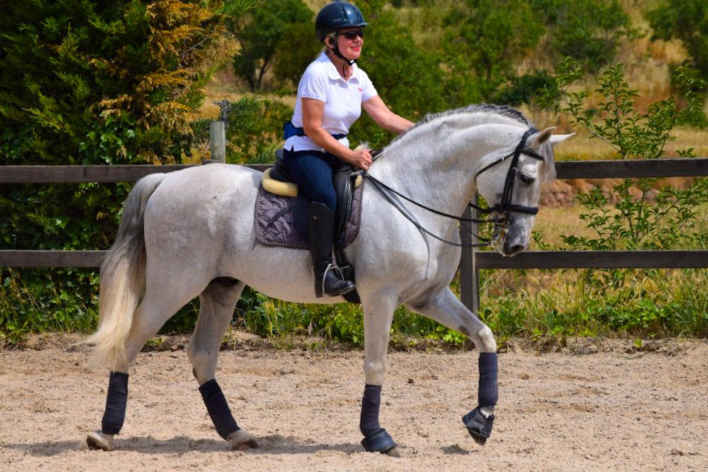 Approaching the horse, Jean might have wondered if this was really such a good idea. She had never ridden a purebred Spanish stallion before. Once up in the saddle, the first, initial tension started to give place to relaxation and the connection started building. Breathing deeply, Jean's feeling with the horse was gradually transforming into one of pure delight.